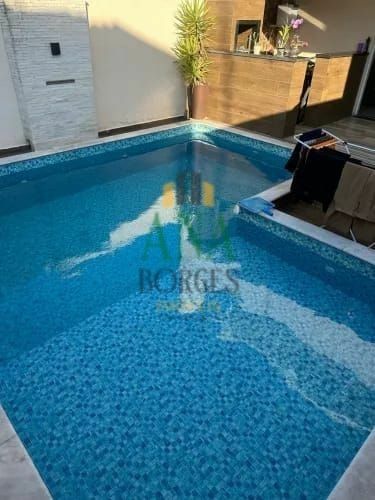 Quartos com ar condicionado, gabinete com cooktop e modulados, área gourmet e piscina com led, cascata e hidromassagem.