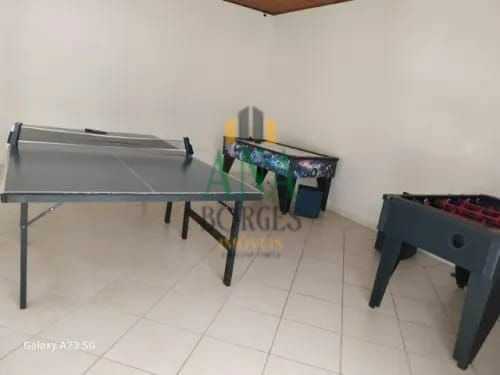 Salão de festas, salão de jogos, piscina, parque infantil com brinquedos.