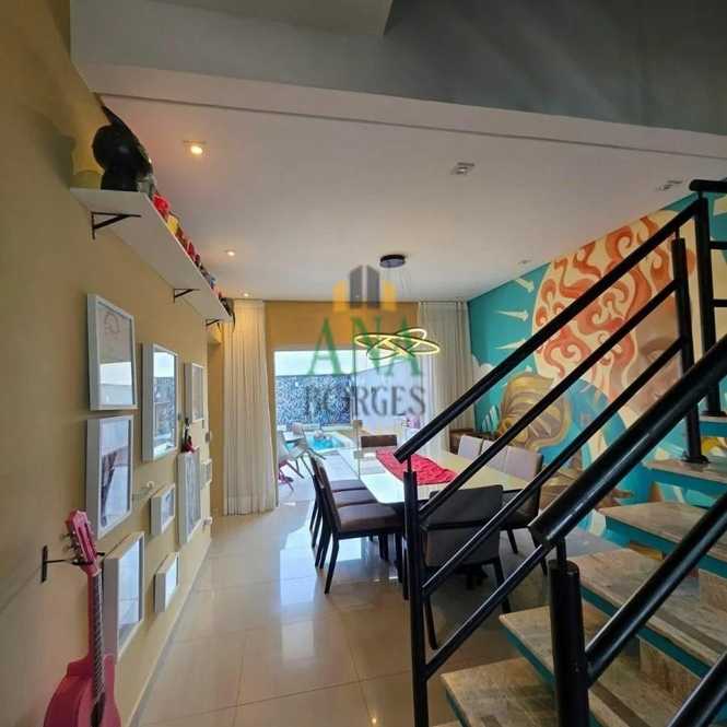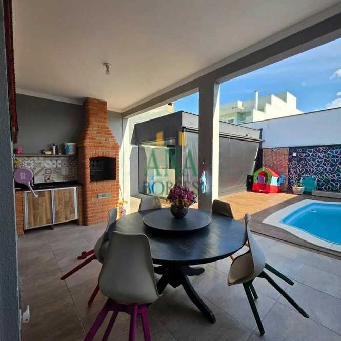 Uma linda casa com 3 dormitórios, todos suítes, móveis planejados, ambientes espaçosos, churrasqueira e uma área coberta com brinquedos perto da piscina