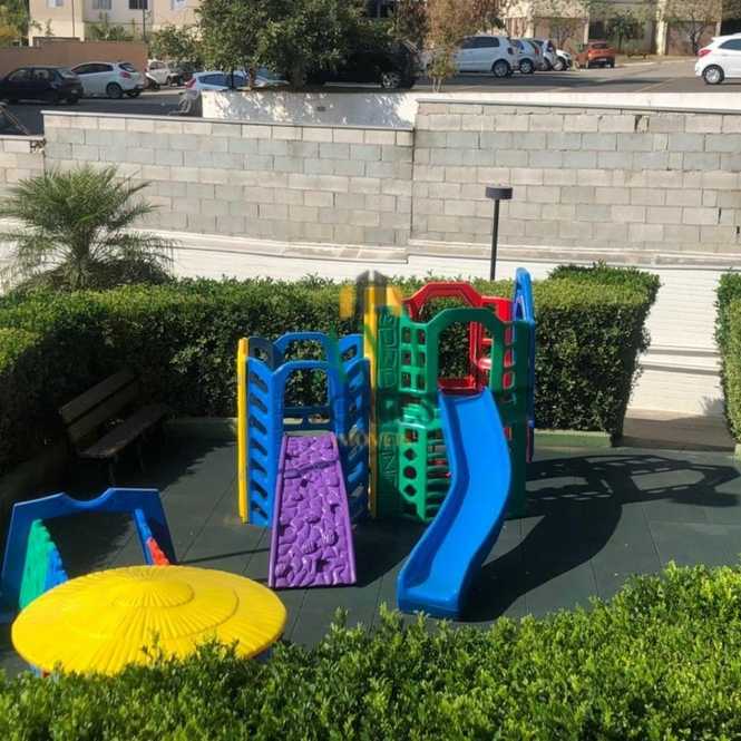 Piscina, academia, salão de festas, quiosque com churrasqueira, quadra, playground, pista de skate e portaria 24 horas.